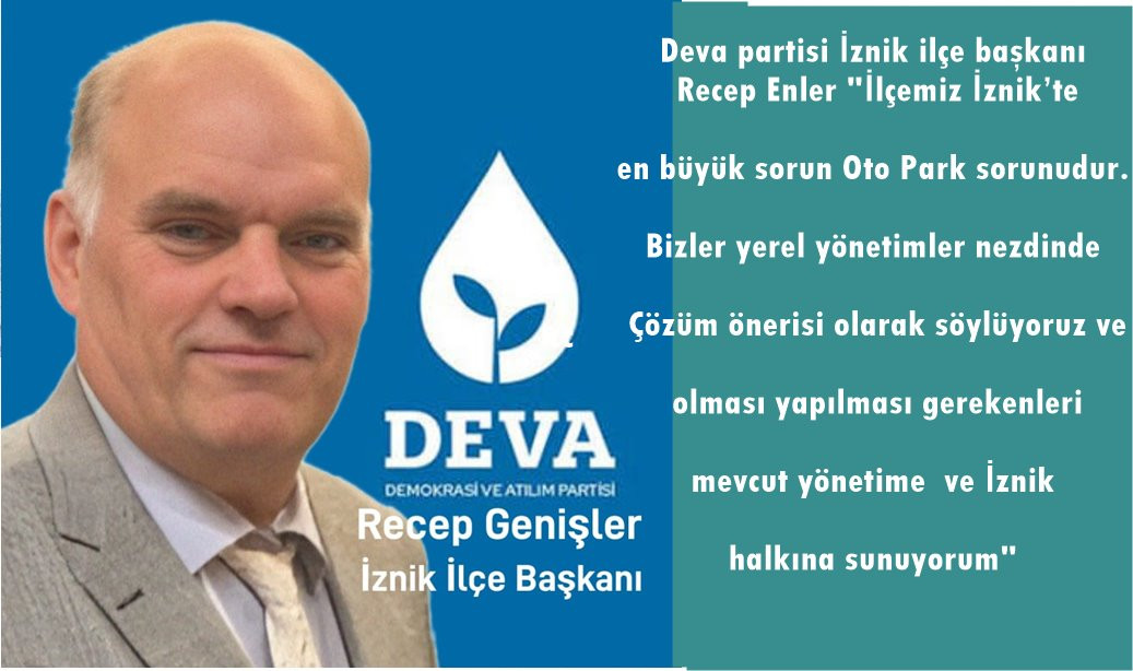 Deva partisi İznik ilçe başkanı Recep Genişler İlçemiz İznik’te en büyük sorunların başında Oto Park sorunudur.