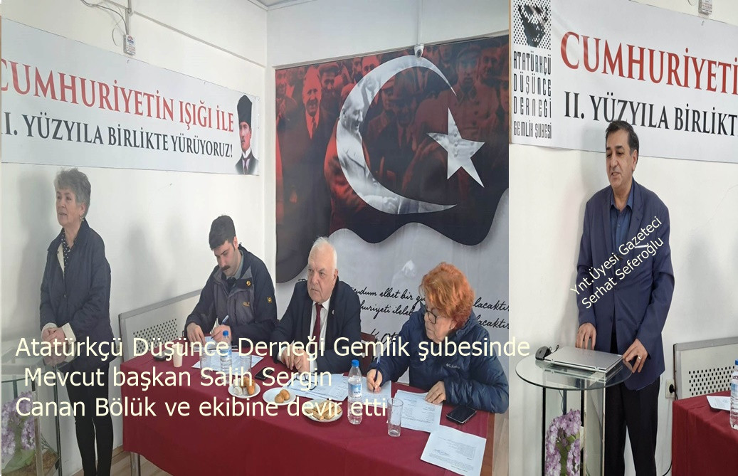 Atatürkçü Düşünce Derneği Gemlik şubesinde kongre heyecanı sona erdi. Mevcut başkan Salih Sergin ve ekibi yönetimi Canan Bölük ve ekibine devir etti. Belediye katlı otopark üzerindeki dernek merkezinde yapılan 17. Olağan kongreye dernek üyelerin