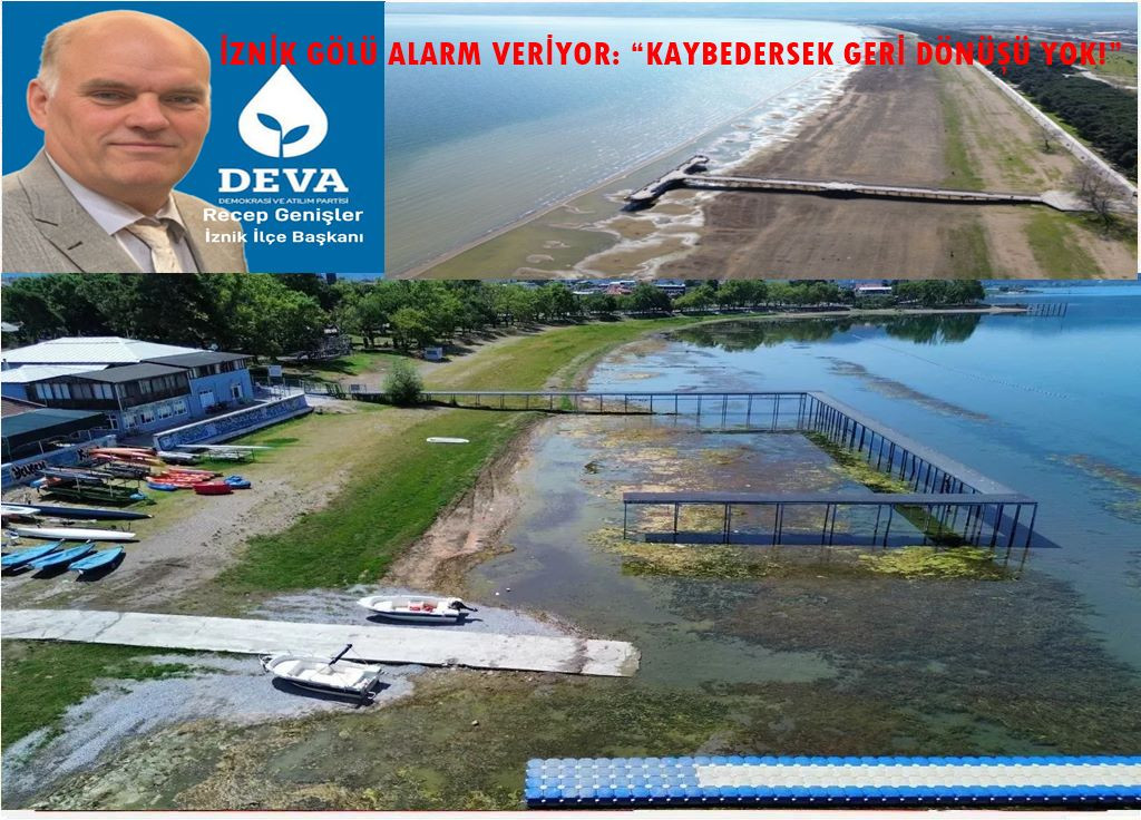 DEVA Partisi İznik İlçe Başkanı Recep Genişler, İznik Gölü’nde kuraklığın tehlikeli boyutlara ulaştığını belirterek çok sert açıklamalarda bulundu. Türkiye’nin en büyük beşinci tatlı su gölü olan İznik Gölü’nün, kontrolsüz su kullanımı ve iklim değişikliği nedeniyle her geçen gün can çekiştiğini vurgulayan Genişler, yetkililere ve kamuoyuna acil çağrı yaptı: