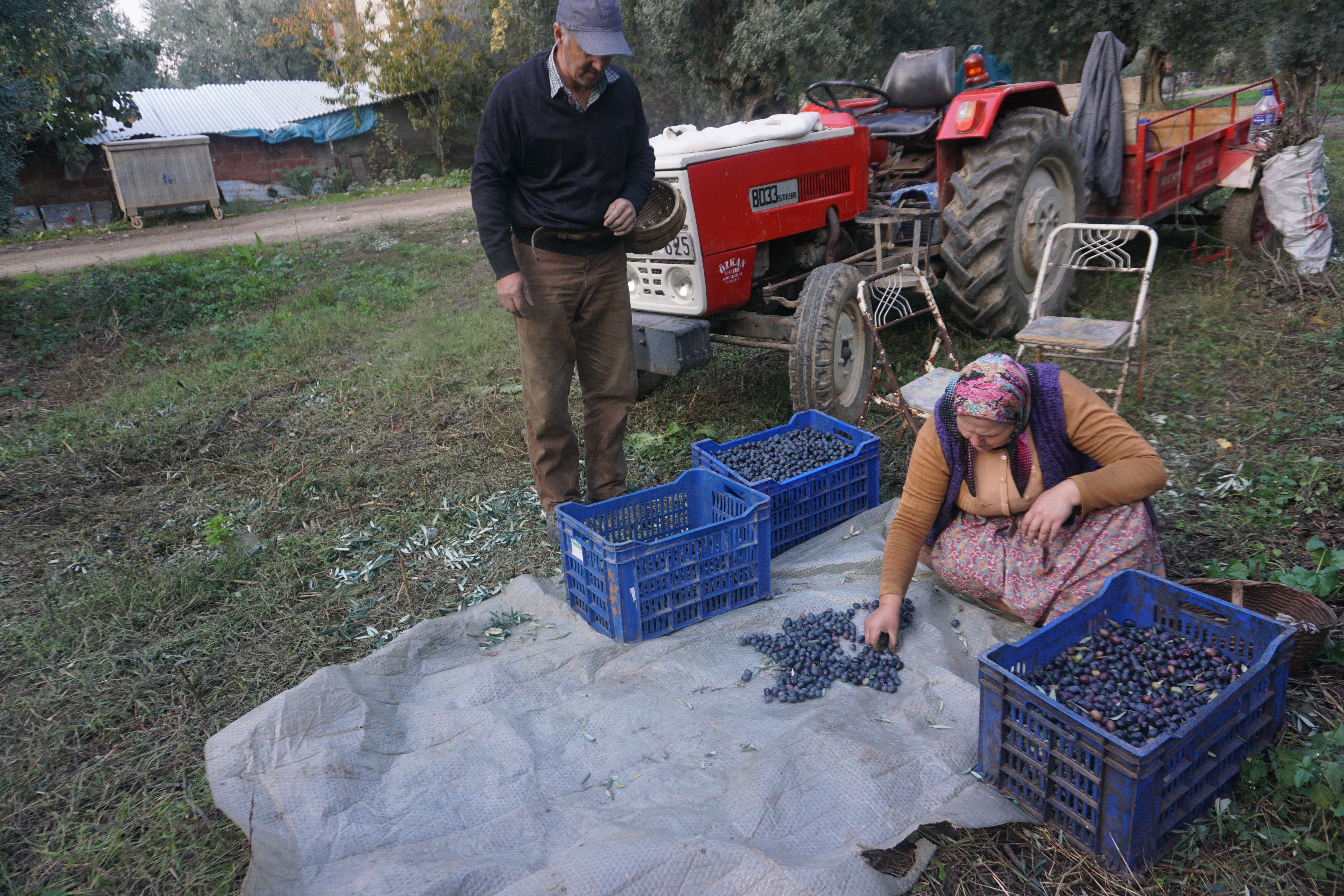 Müşküle köyünde birçok üretici zeytin toplama işini bellerine bağladıkları sepetlerle toplayıp elleri ile kadınlarımız tarlada gündüz satılacak olan zeytinleri boylama yaparak ayırmaktayız.