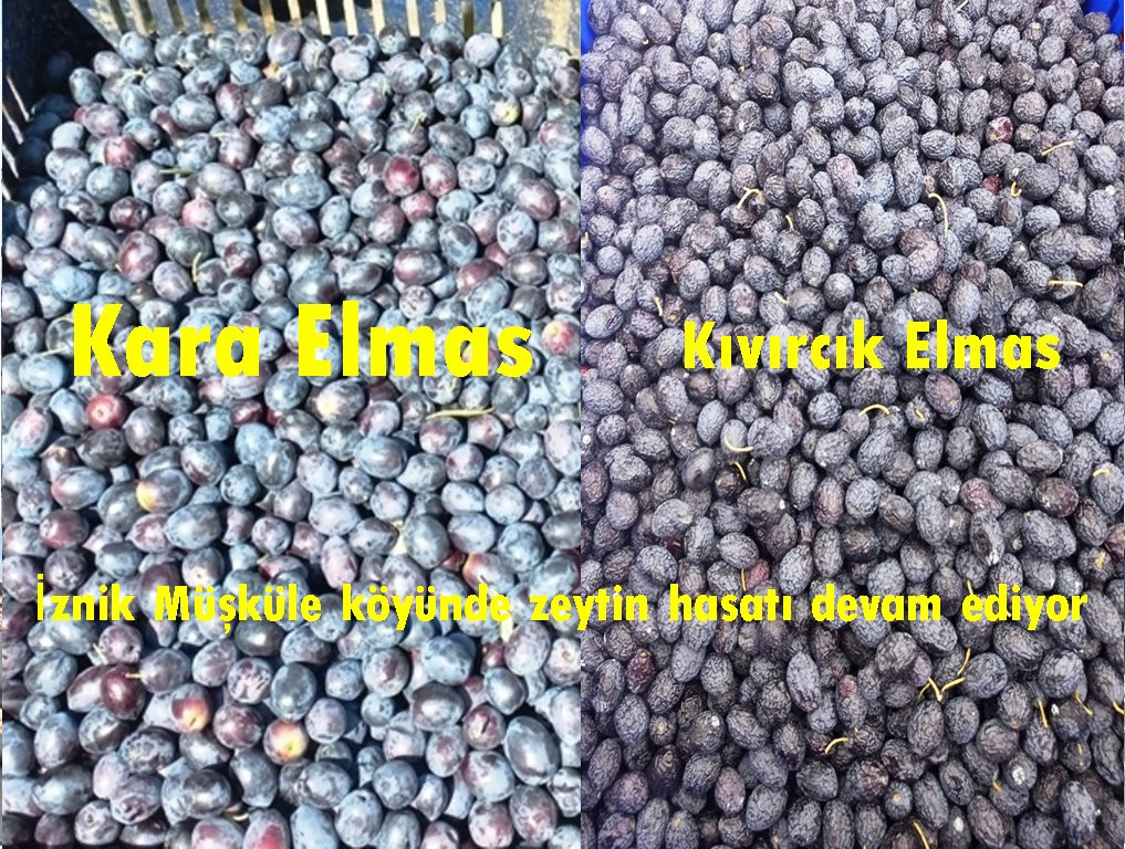 Müşküle köyünün kara elmaslarının (Zeytin) toplanması devam ederken hava şartlarının soğumasıyla zeytinlerde suyunu çekerek kıvırcık oldu.
