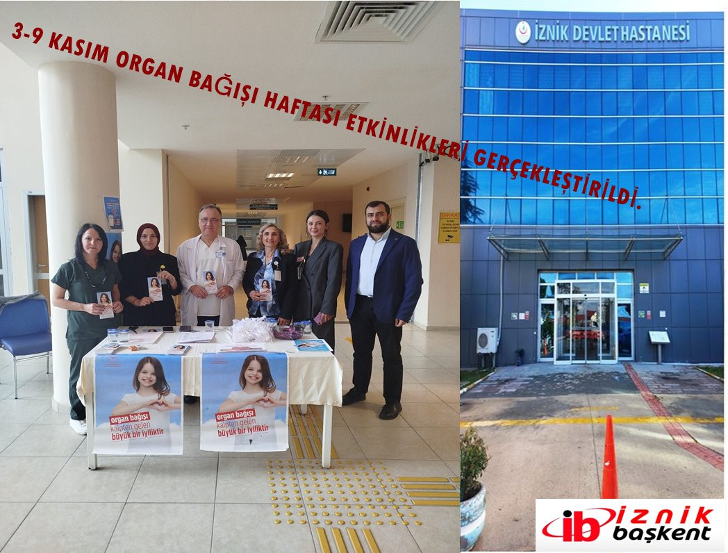 3 -9 Kasım Tarihleri arasında her yıl Organ bağışı bekleyenlere dikkat çekmek ve Organ bağışını destekleyip yaygınlaştırmak Amacıyla gerçekleşmektedir. Bu kapsamda İznik devlet hastanesin ’dede etkinlikler düzenlendi. Başhekim Op. Dr. Aybars ALEMDAROĞLU ve başarılı Hastane yönetimimiz birçok sağlık konularında personel ,hasta ve hasta yakınlarına bilgilendirme yapılmaktadır.