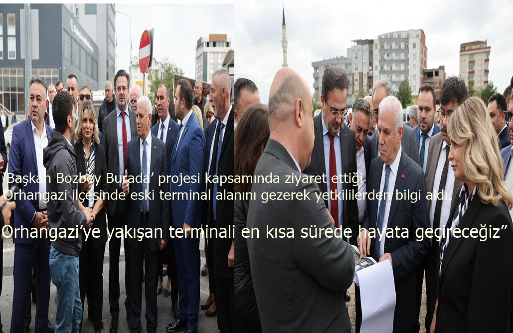Bursa Büyükşehir Belediye Başkanı Mustafa Bozbey de ‘Başkan Bozbey Burada’ projesi kapsamında ziyaret ettiği Orhangazi ilçesinde eski terminal alanını gezerek yetkililerden bilgi aldı. BURULAŞ, BURKENT ve Büyükşehir yöneticileriyle alanı inceleyen Başkan Mustafa Bozbey, terminal esnafının ve bölge halkının taleplerini dinleyerek çözüm önerilerini anlattı.