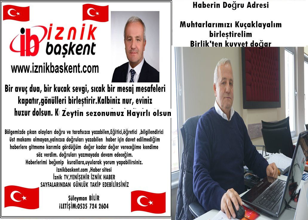 İznik muhtarlar derneği ikiye bölündü, Bölünmek yerine kucaklaşma olması gerekirken nedense Mevcut 1989 Yılında ilk muhtar Remzi Yılmaz tarafından kurulan bu dernek İznik belediye iş hanında ikinci katta hizmet veriliyor ken nedeni bilinemeyen uzlaşma sağlanamadan ikiye bölünmüştür,İznik Toplamda 46 Köy ve Mahalle Muhtarımız bulunmakta dır.